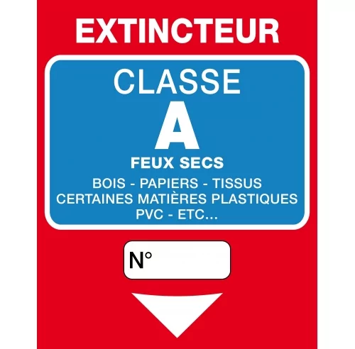 Le panneau - Extincteur classe A - peut être réalisé en adhésif ou en PVC rigide 1,5 mm.